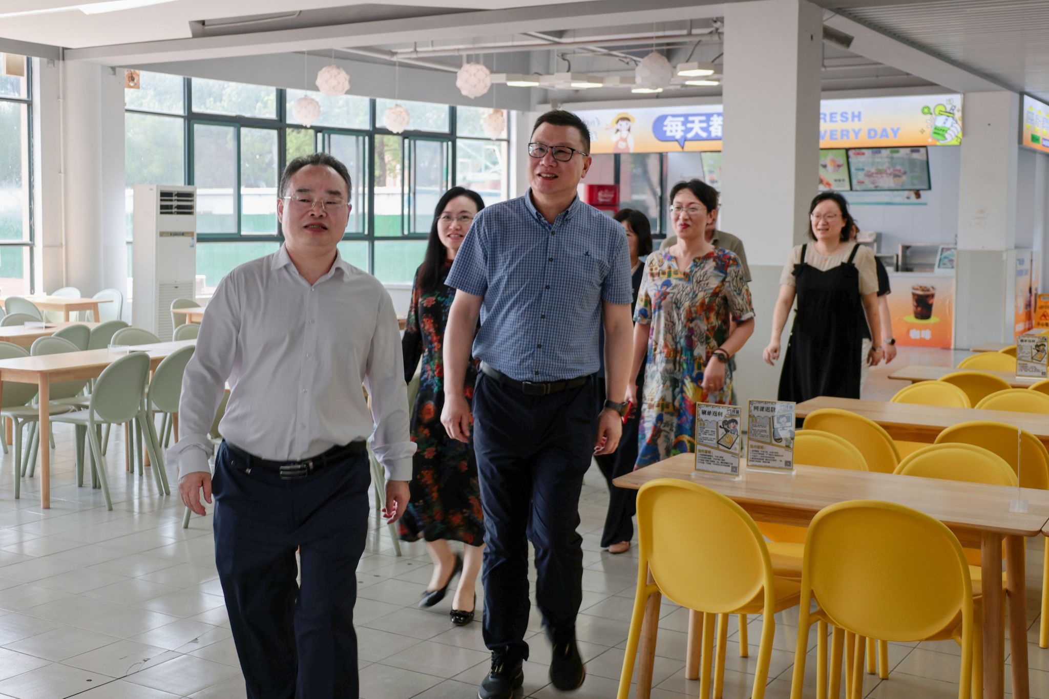 校领导一行先后走访了徐汇校区门岗值班室、食堂、26号楼,8号、10号、18号学生公寓楼等,与值班干部、职工亲切交谈,细致询问高温下的工作、生活情况,送上防暑物品,感谢大家的辛勤付出与无私奉献。