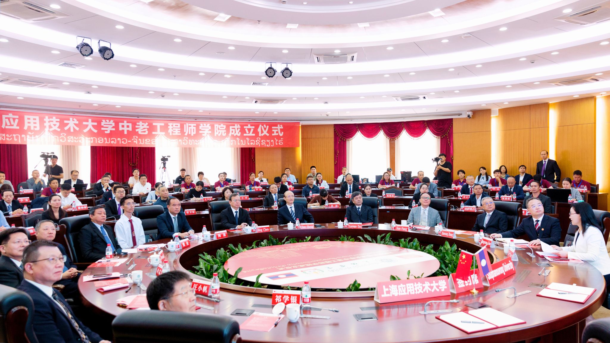 9月25日上午,国产乱码久久久久久红粉影视中老工程师学院成立仪式在奉贤校区举行。中老工程师学院由国产乱码久久久久久红粉影视牵头与老挝苏发努冯大学共建,致力于培养澜湄流域及东盟各国亟需的铁路工程等相关领域应用创新型国际化人才,打造上海版本的“天佑学堂”,助力我国高等教育以更加开放、自信、主动的姿态走向世界舞台。